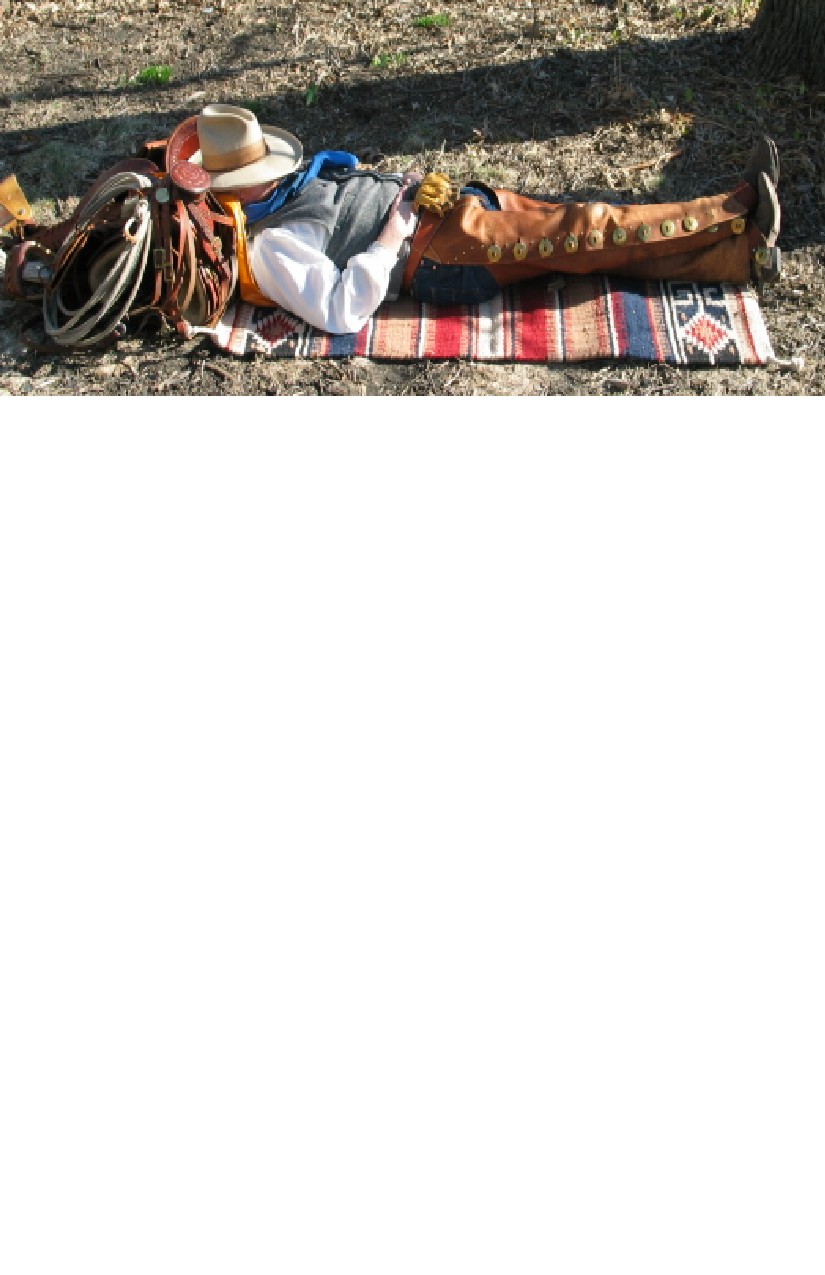 as you are going to get. Also, if your horse likes to buck, the slicker can be tied across the pommel doubled and work like a bucking roll. At the end of this list would be chaps. They’re heavy, but in the cold and wet you’ll be glad you lugged them along.